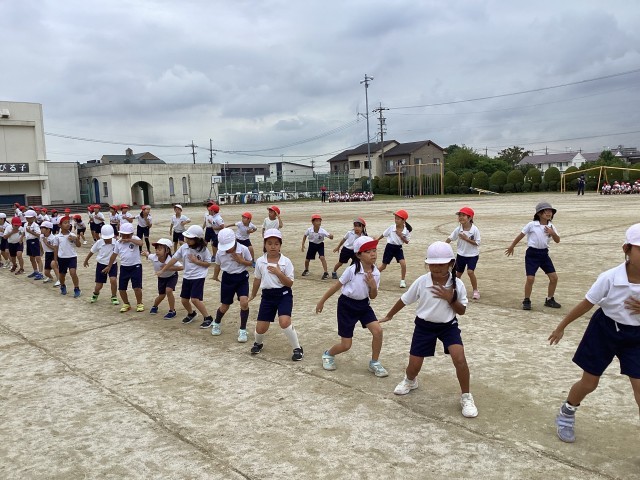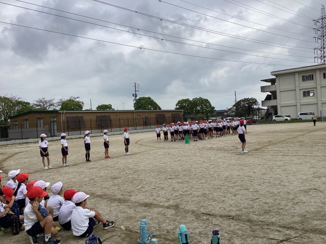 4年生と運動会の練習をしました。