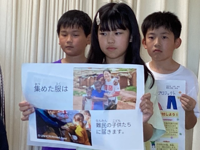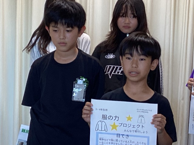 SDGs、服の力プロジェクトに取り組んでいる5年生。「服をリサイクルしよう」と全校放送で呼びかけました! 集まった服は、難民の子どもたちに届けます。国を超えて繋がるこのプロジェクトに協力お願いします!!