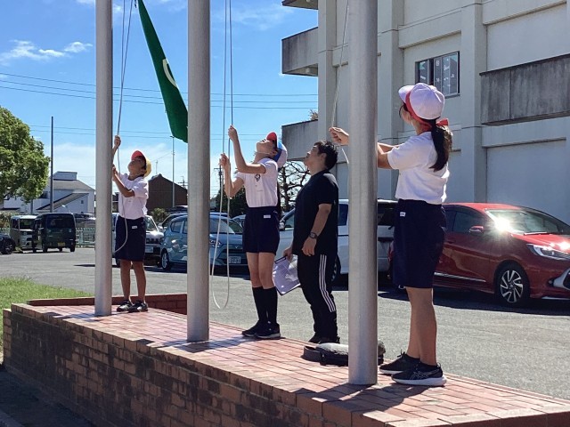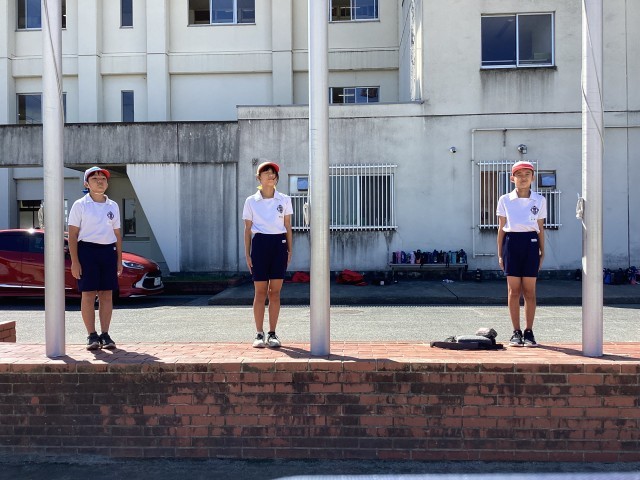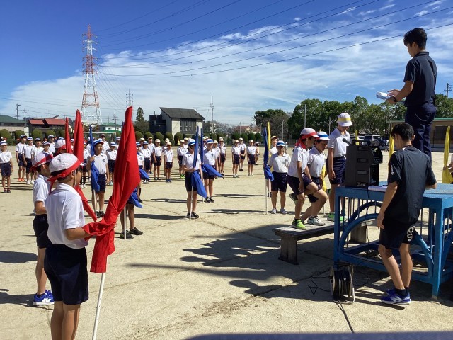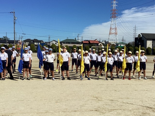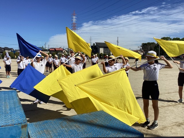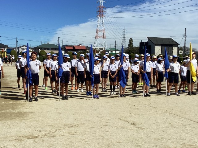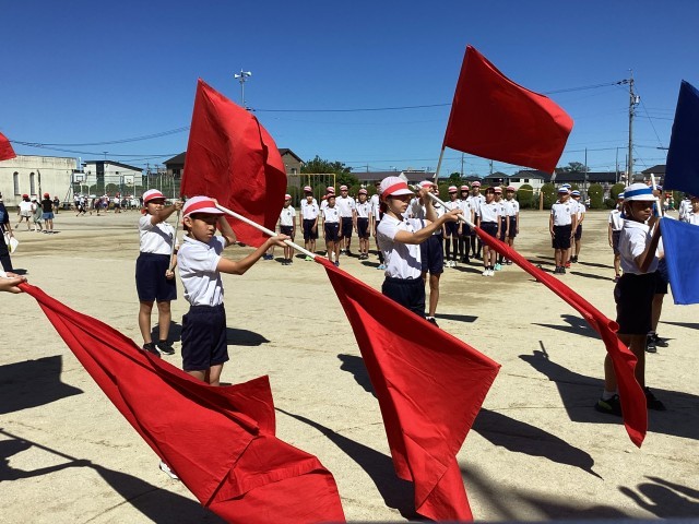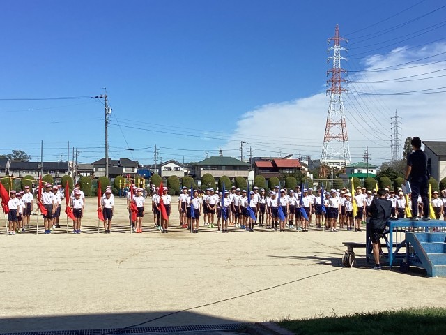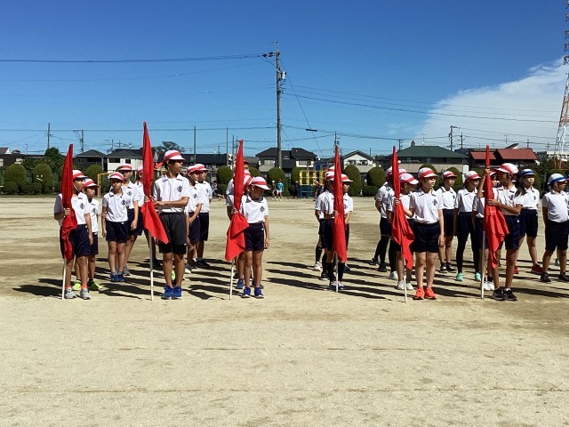 6年生が開閉会式の練習をしました。選手宣誓をする3人の大きな声。旗を持っている子。かっこいいです!運動会まで後1週間ほど。今から運動会が楽しみですね