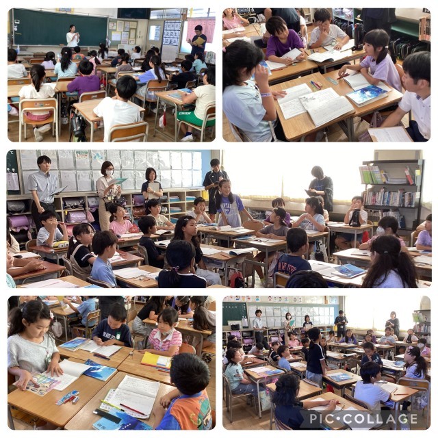 国語「ちいちゃんのかげおくり」の研究授業がありました。「かげおくり」や「空」という言葉をキーワードとして話し合い、さらに読みを深め合っていました。