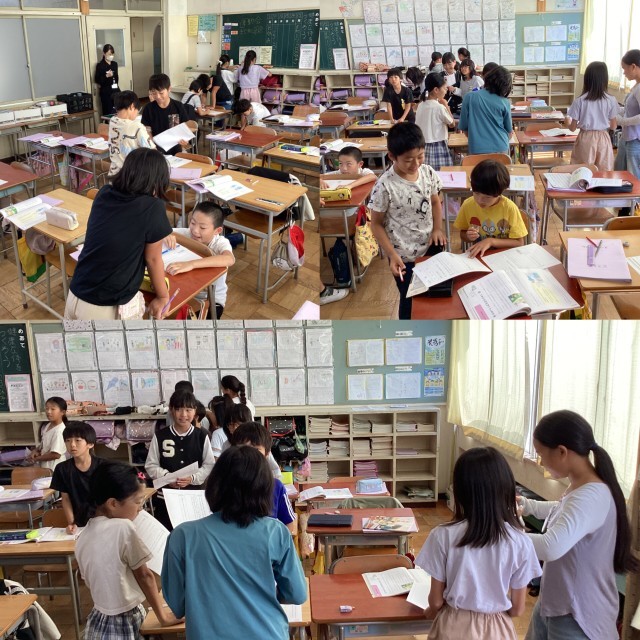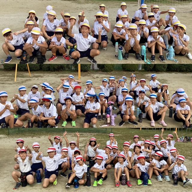 運動会のリハーサルがありました。2年生と一緒に行い、大きな声で応援していました。