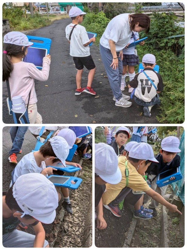 今日は植物に目を向け、学校周辺の様子を見に行きました。稲刈りが終わった田んぼや、野菜が植わった畑、道端の草花等、たくさんの秋を見つけました。