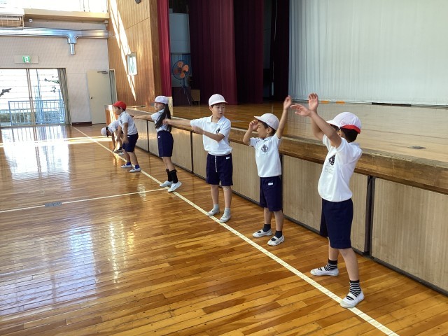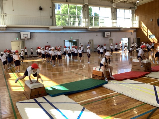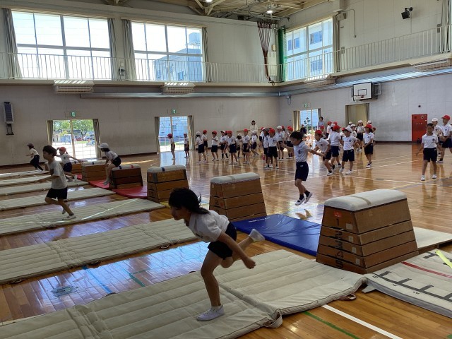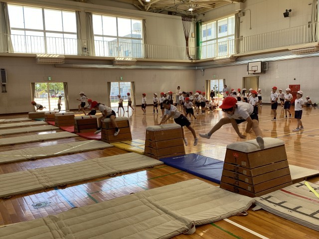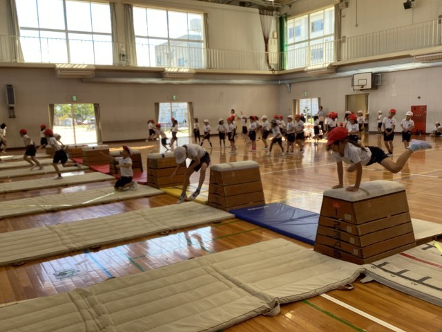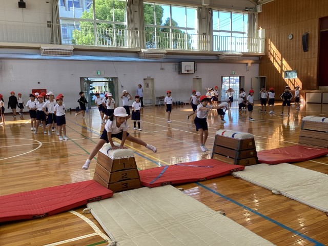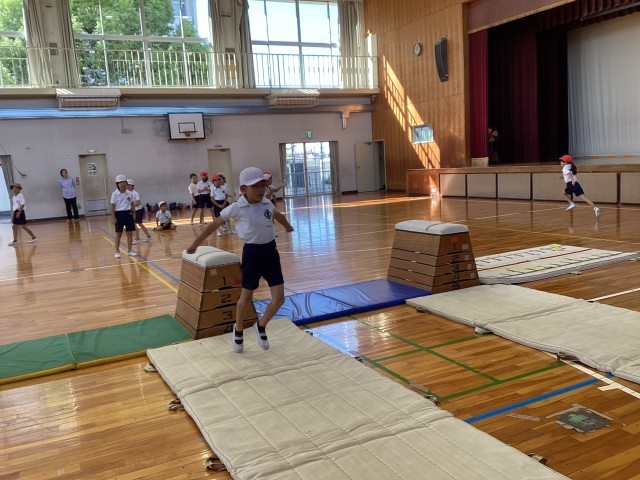 手をつく位置や両足で踏み切ることを意識して練習しました。
