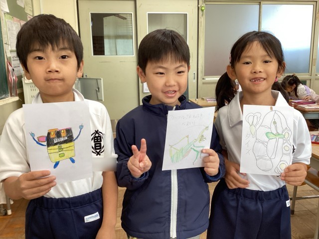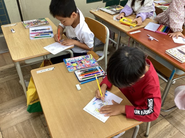 ペアのお兄さんお姉さん宛に読書郵便を描きました。一生懸命描いていました。