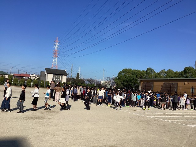 45周年記念の航空写真と全校写真を撮りました。5年に1回行われています。11月11日の授業参観には写真見本が出来上がると思います。お楽しみに!