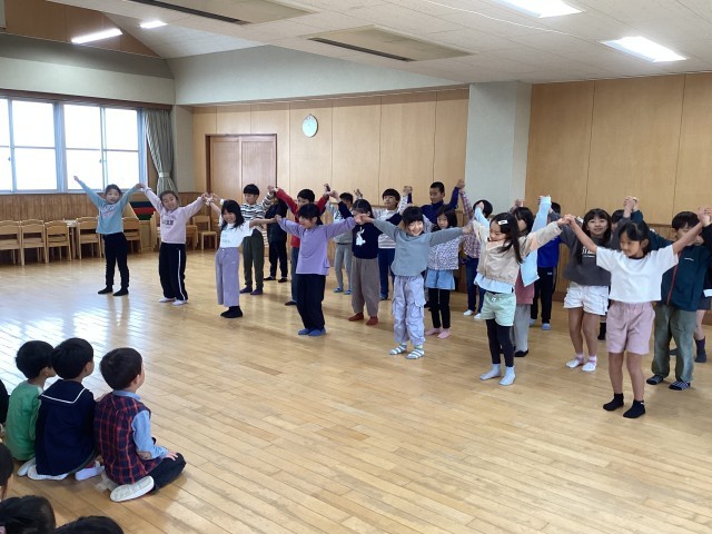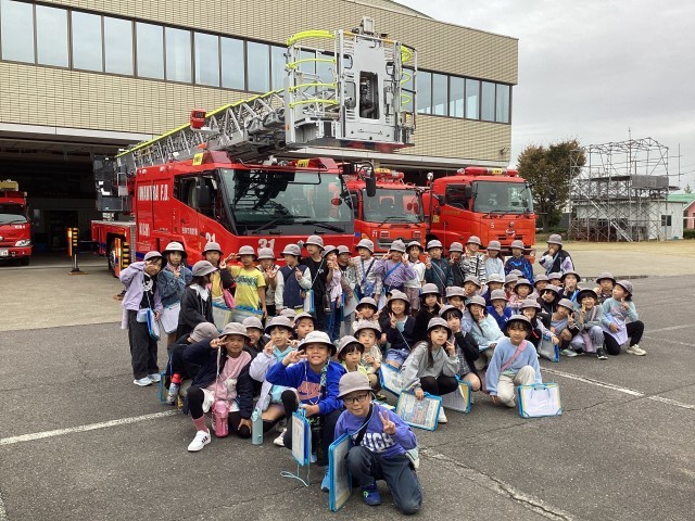 町探検 稲荷コースは、小岩井歯科、消防署、角善などを見学しました。消防署では、はしご車を見せてもらって大興奮。曽野第二幼稚園では、ダンスや歌を披露したり、一緒にゲームをしたりしました。