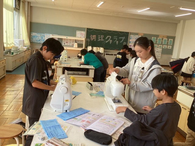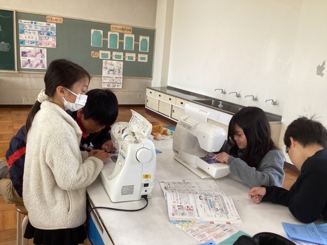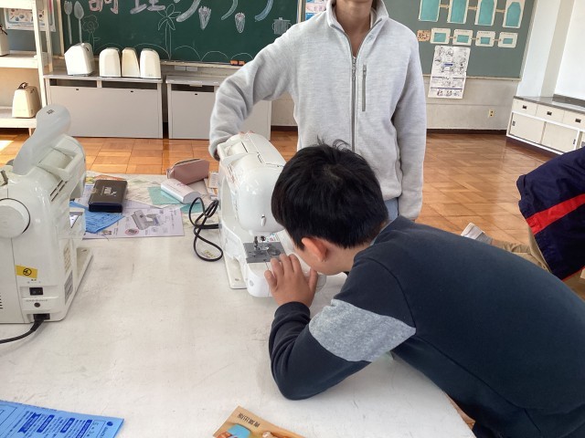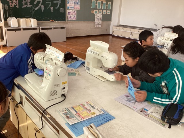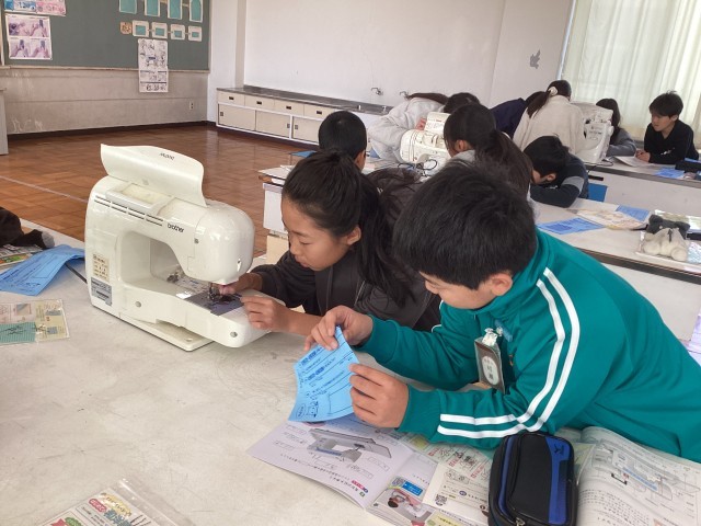 糸をかけて、ミシンで縫う練習をしました。針に糸を通すのが難しい。そして、下糸出すのも難しい。それでも諦めずに頑張っていました。