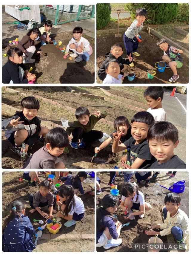 大きいな山をつくったり、穴を掘って水を流したりしました。
