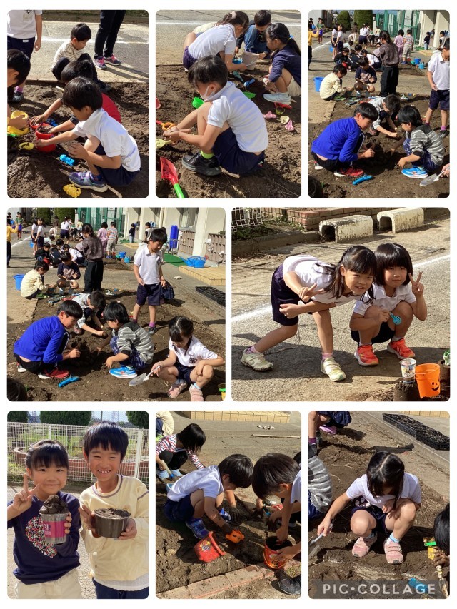 1ねんせいみんなで図工「つちやすなと なかよし」の学習をしました。