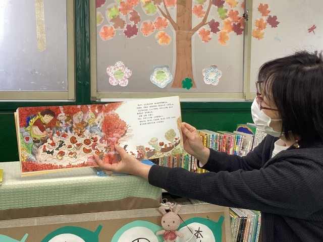今日の本は、「おでんおんせん」。今の季節にぴったりの絵本を読んでくださいました。