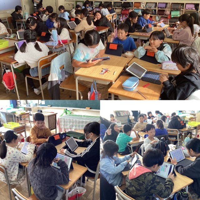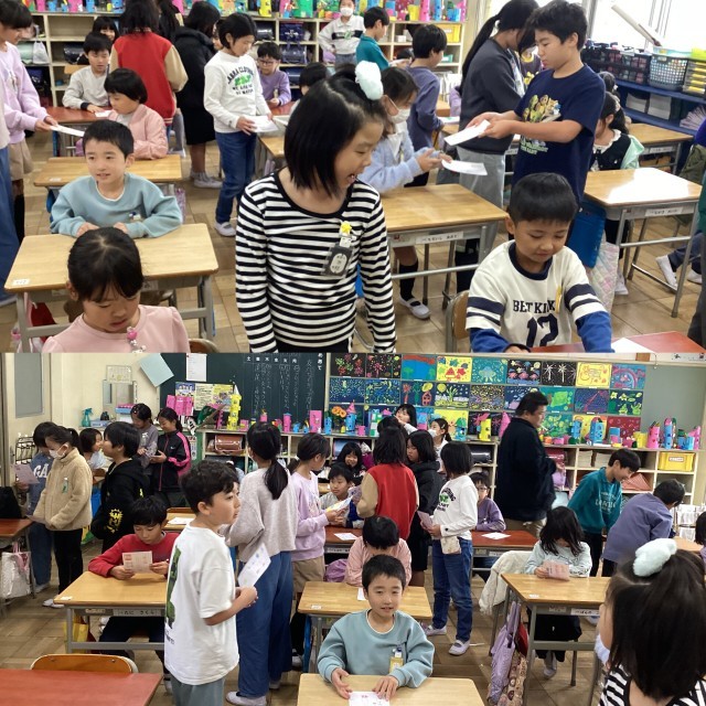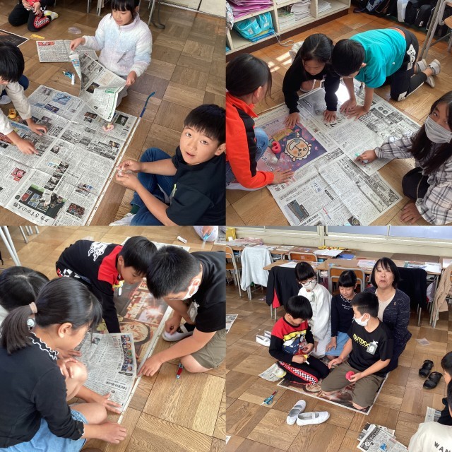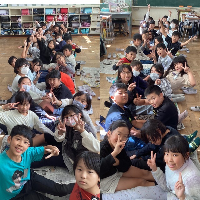 算数の面積の学習では、1平方センチメートルの大きさを作りました。何人入れるのか調べました。