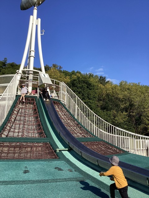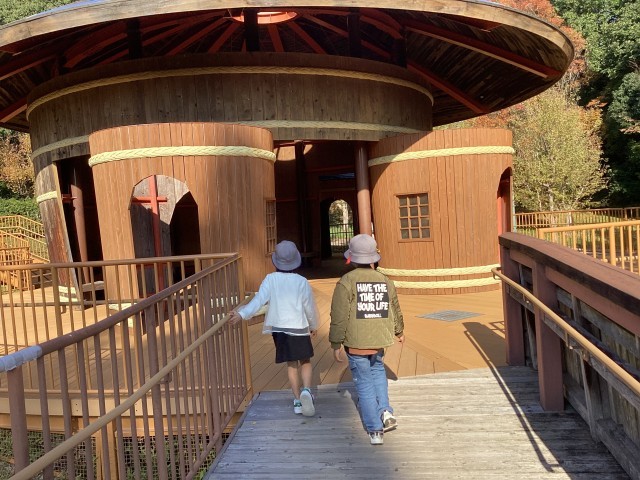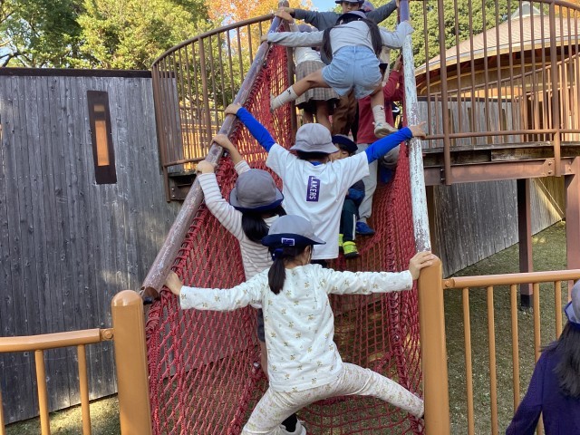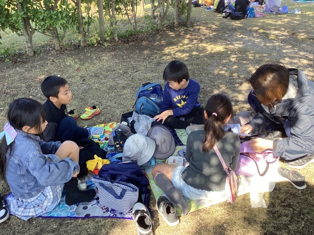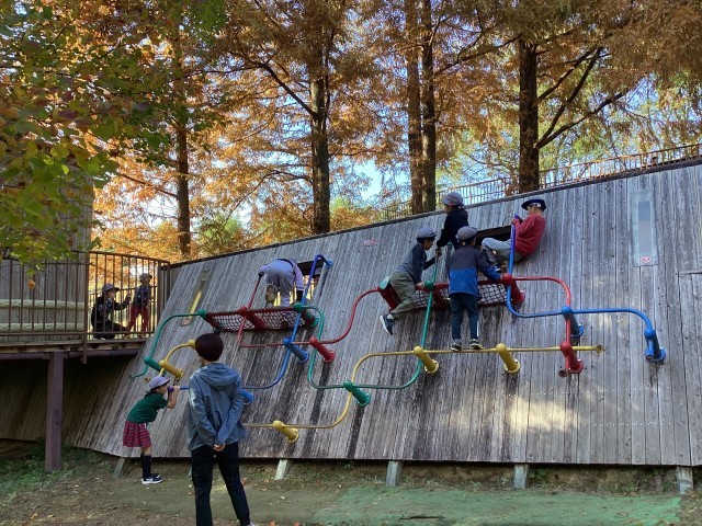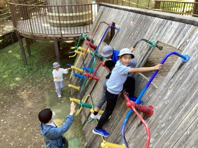 子供広場で、どんぐりを拾ったり、芝生の上を転がったりしました。
