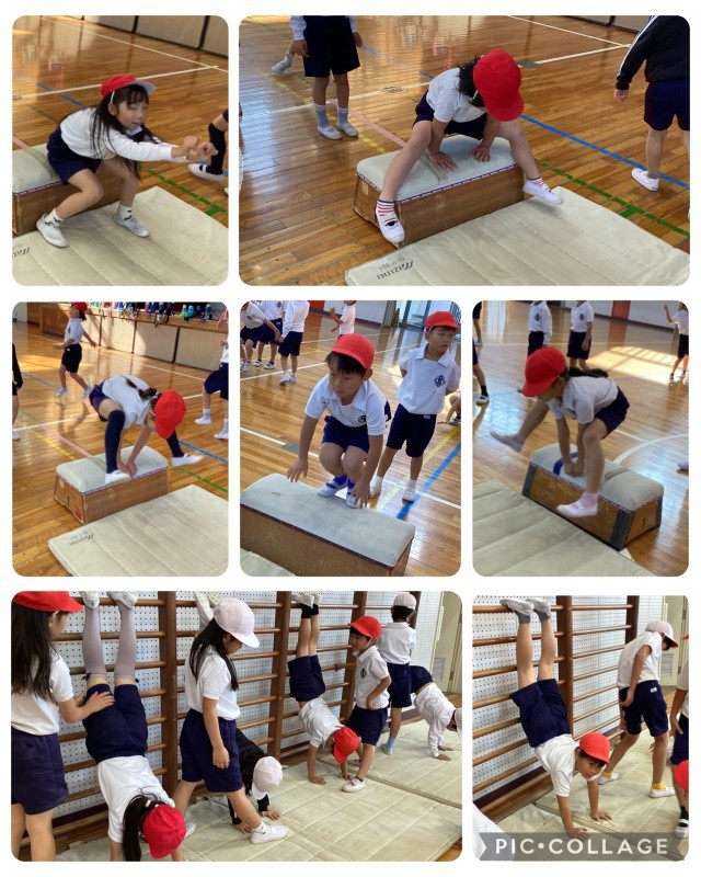 体育では、マットや跳び箱遊びをしました。
