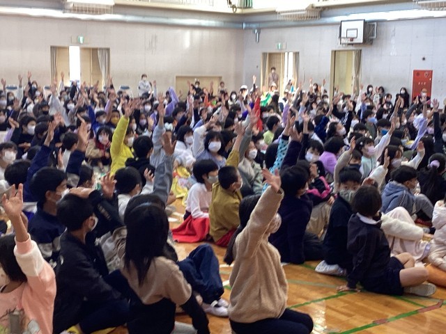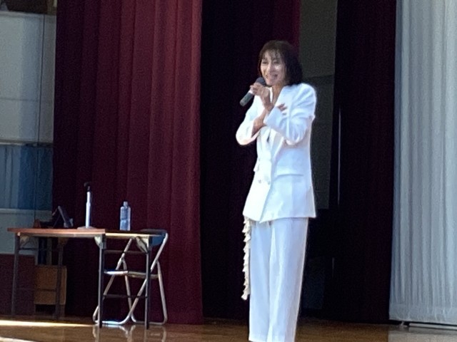 人権講演会でシンガーソングライターの玉城ちはるさんが来てくれました。「命の参観日」をテーマに違いを認め合うことの大切さを素敵な歌と共に届けてくださいました。