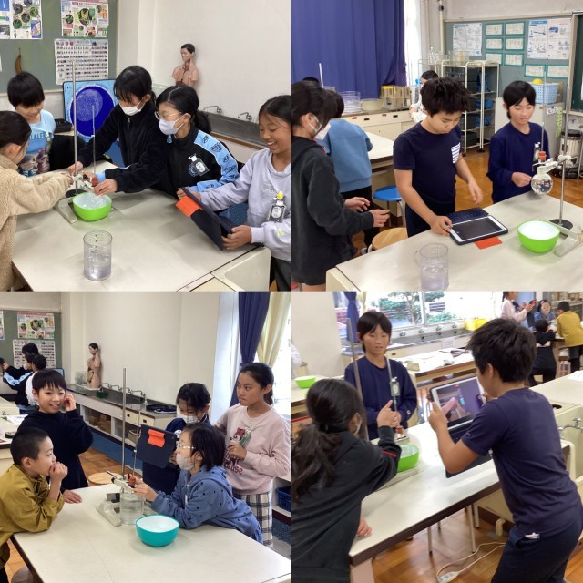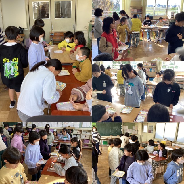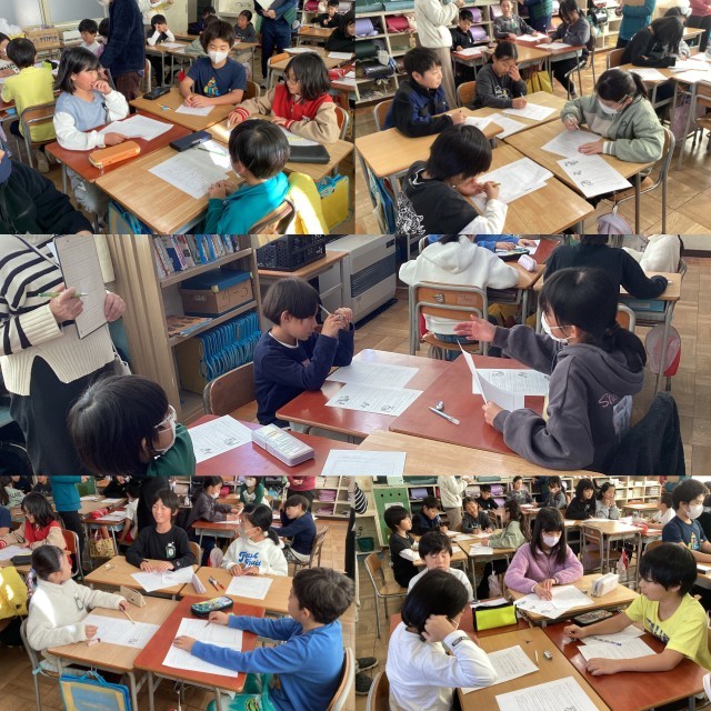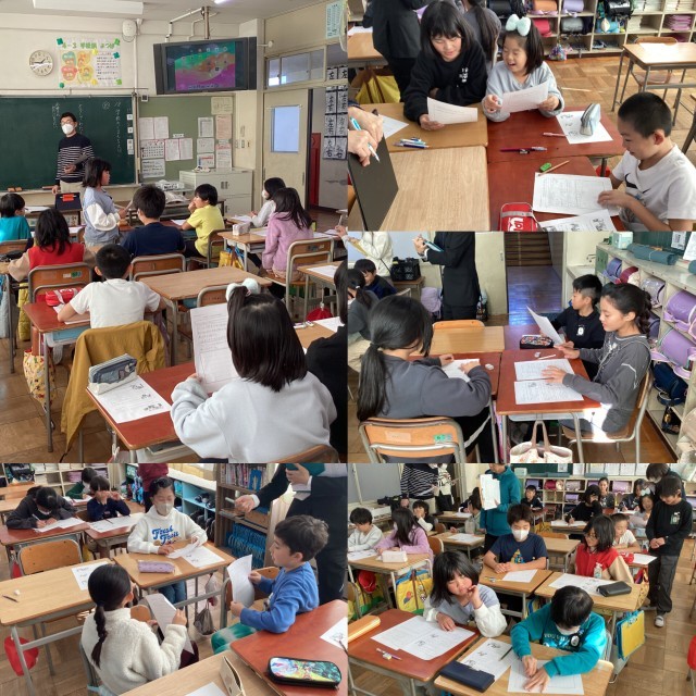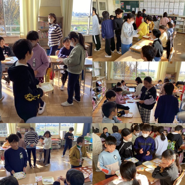 外国語の授業で、パフェを作るために買い物の練習をしました。道徳の授業では、友達の考えを聞いたり感想を言ったりしました。