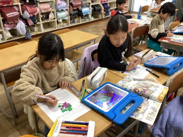 卒業式と入学式のお祝いパンジーの観察もしました。