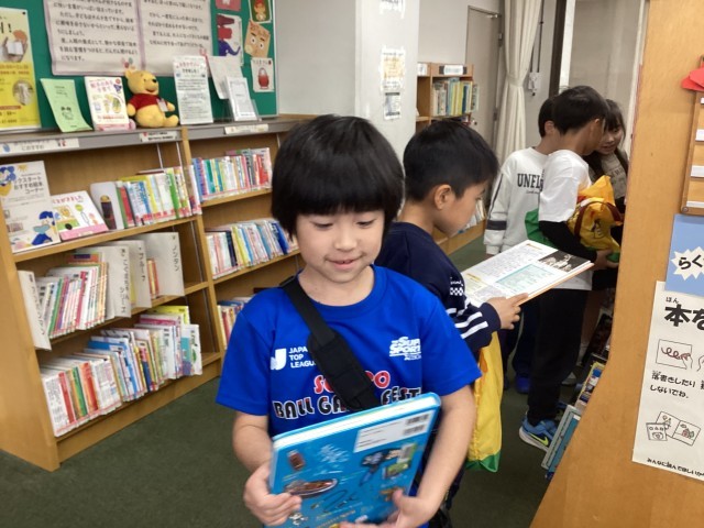 たくさんの本から自分の読みたい本を一冊選んで借りました。