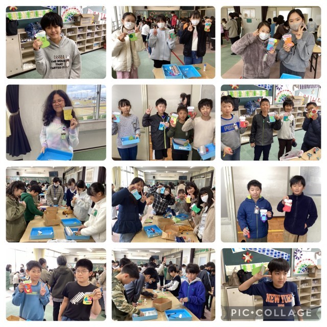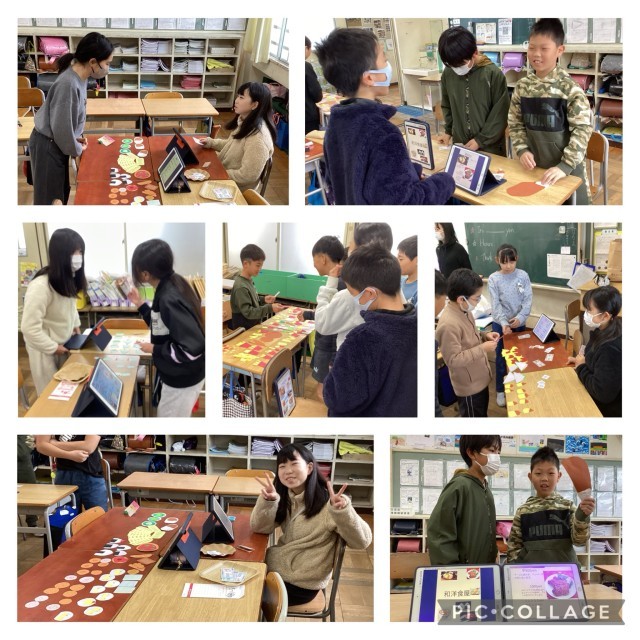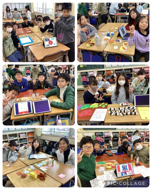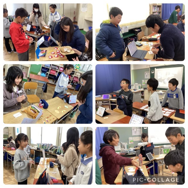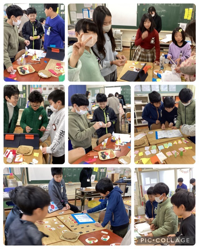 外国語の授業の中でお店屋さんをしました。品物も手作りでとても楽しんで英語で買い物をしていました。
