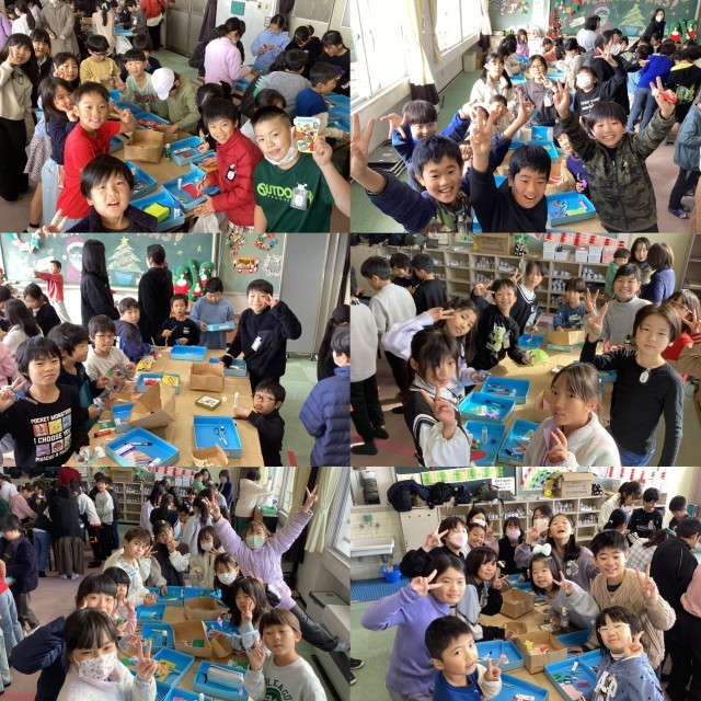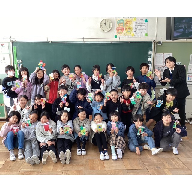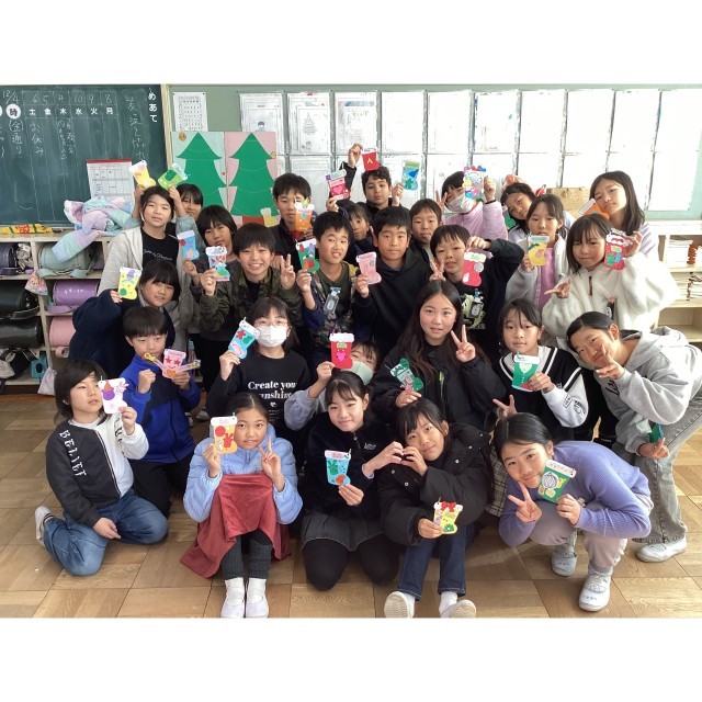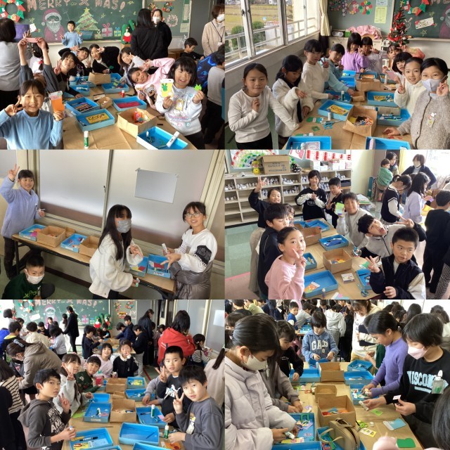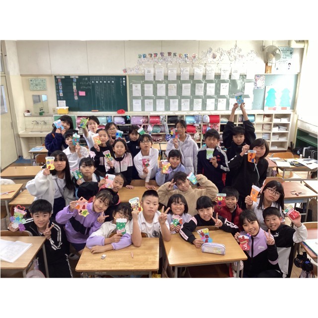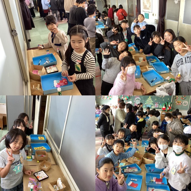 2年生と4年生は、ラビットさんの工作教室がありました。きれいに折り紙やシールなどを貼り、作品を作りました。