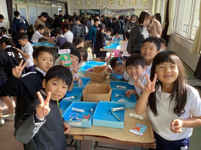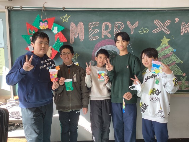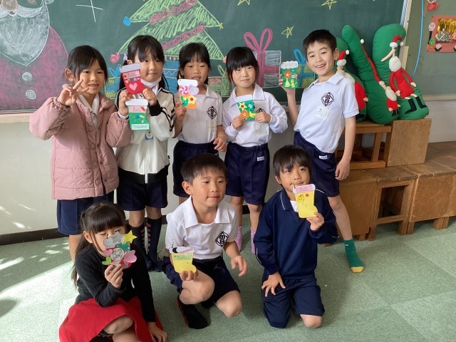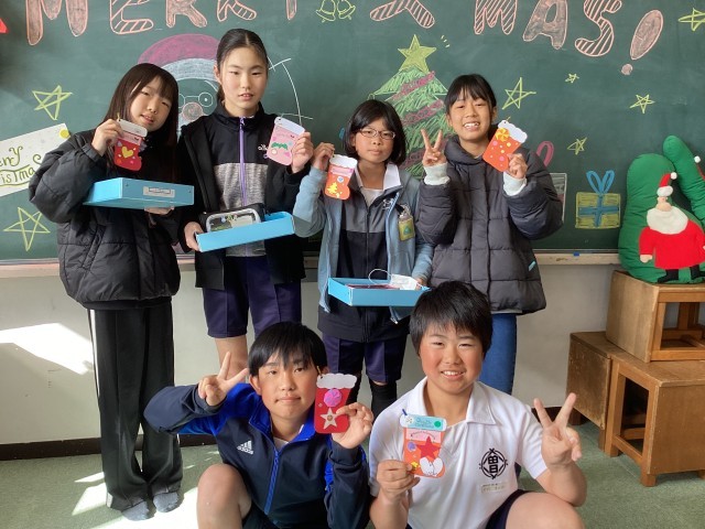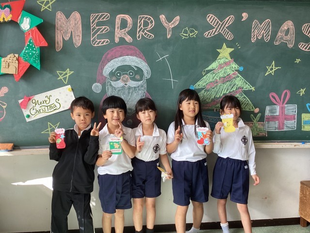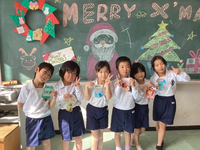 1年生に優しく声をかけてくれる6年生達にほっこり。笑顔いっぱいの1、6年生です。ラビットさん、素敵なツリーや飾りを用意してくれてありがとうございました!!