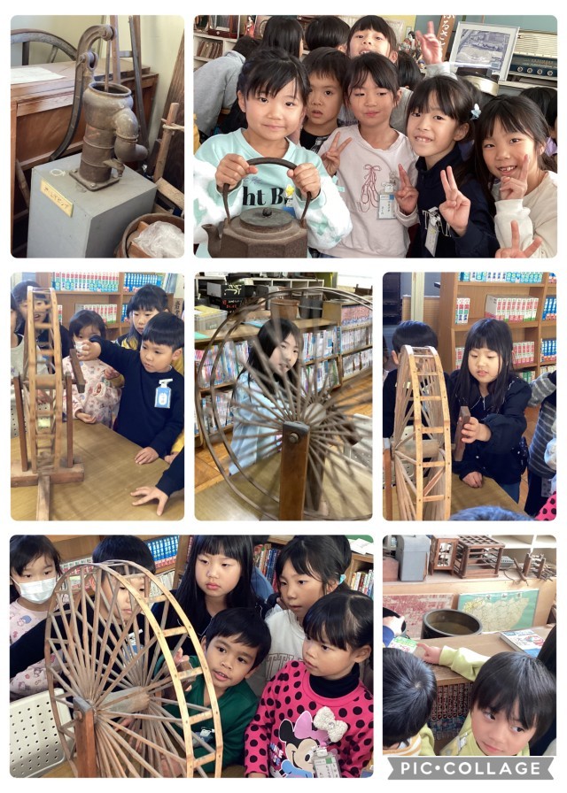 糸車をまわしてみたり、やぶれ障子からのぞいてみたり。昔の生活を想像しました。