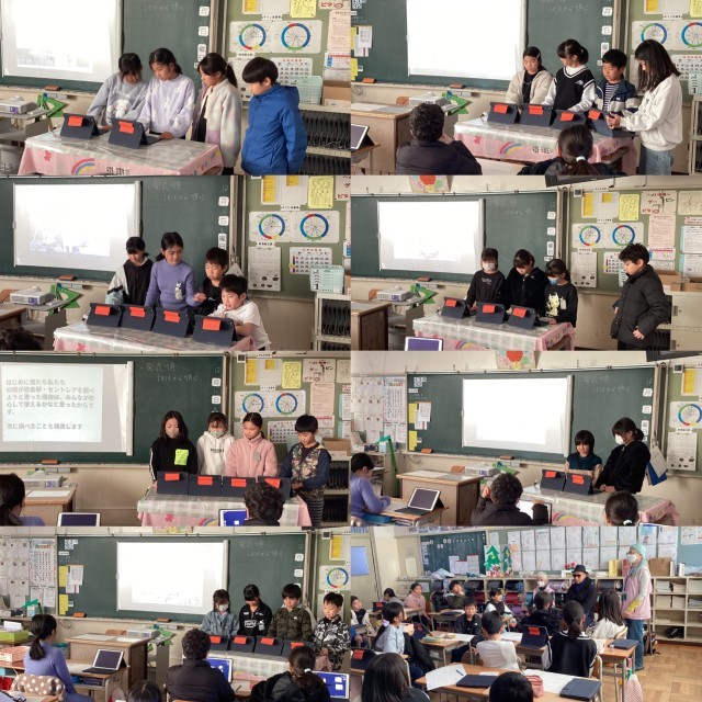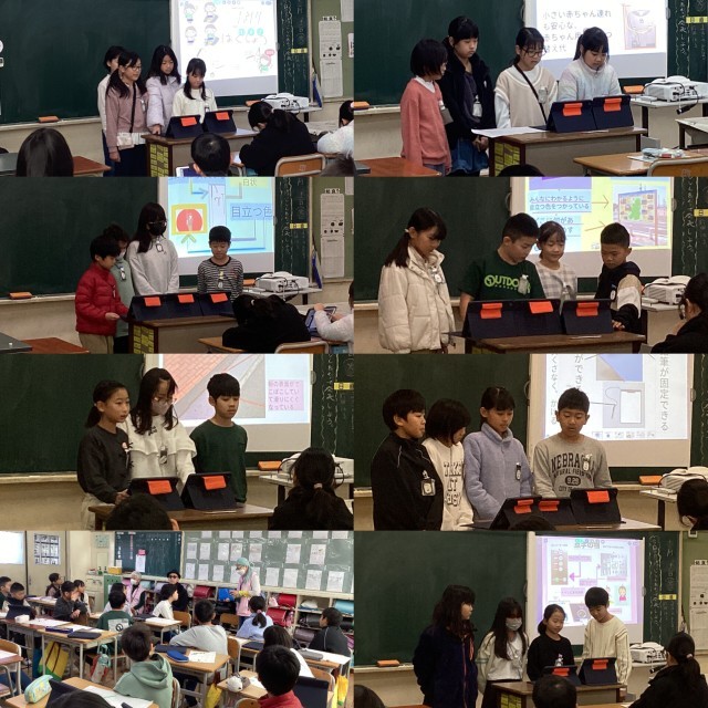 ユニバーサルデザインの授業で、分かったことやこれからどうしていけばいいのかなどを発表しました。ユニバーサルデザイン研究会の方にも見ていただきました。