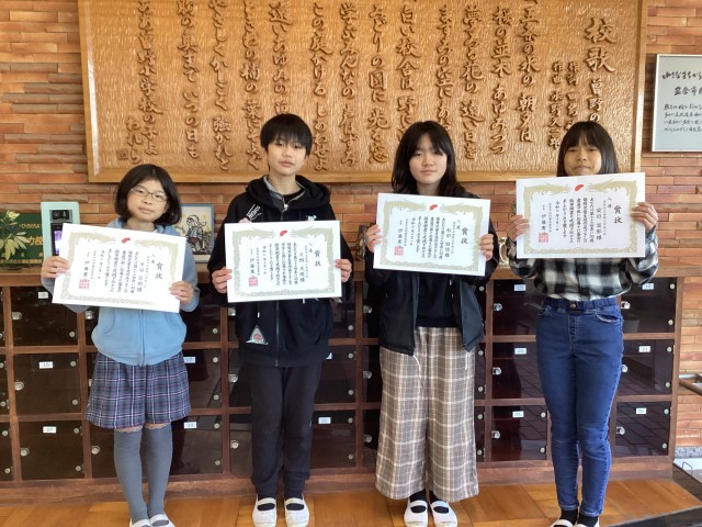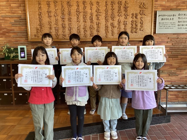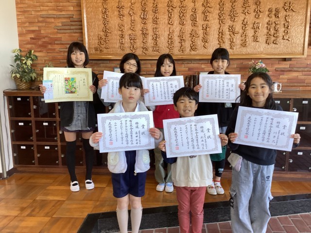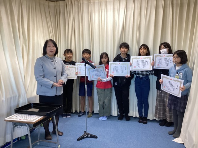 書写作品コンクール、赤い羽根共同募金、税に関する絵葉書に応募した子達の表彰式がありました。たくさんの子たちが、表彰されました。