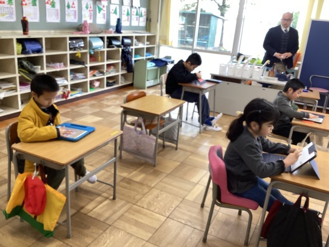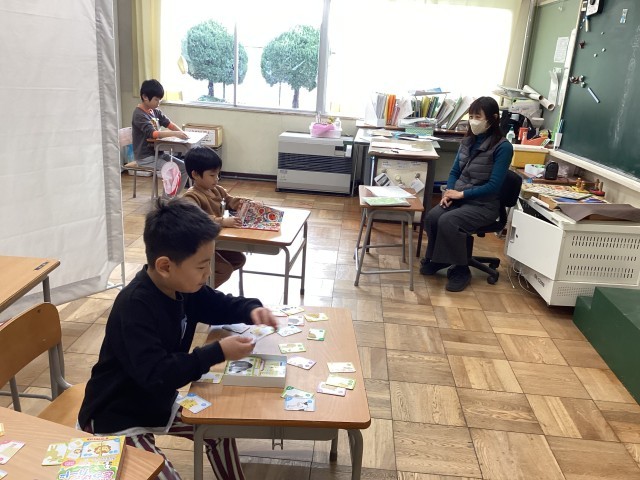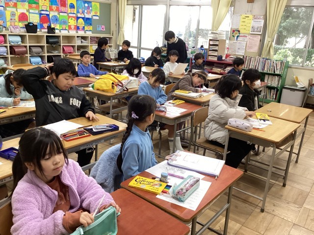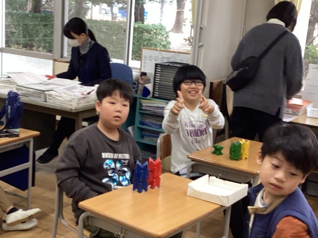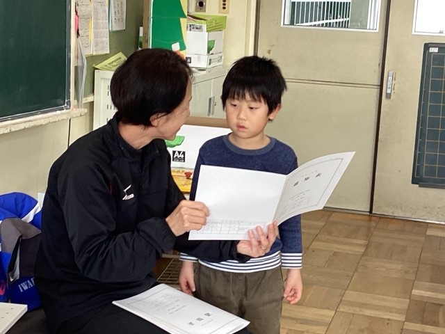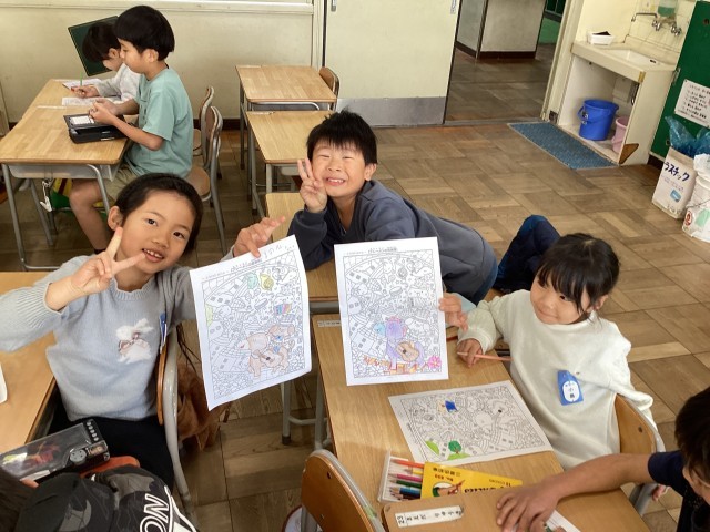 学級活動の時間に2学期の締めくくりで通知表をもらいました。笑顔がいっぱいです。