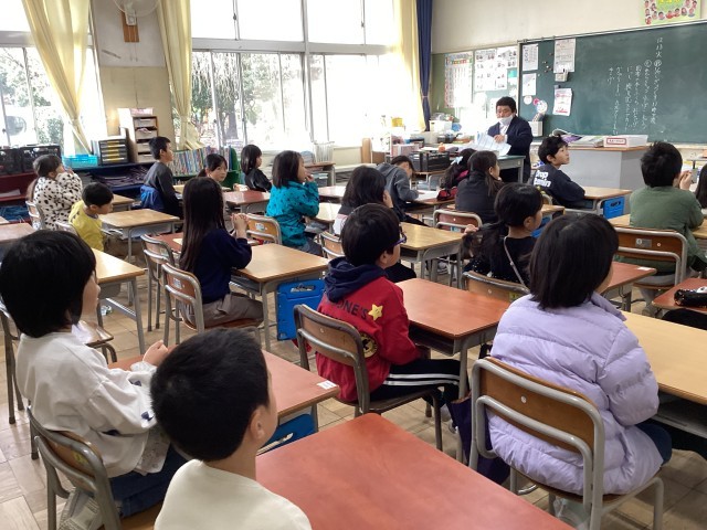 校長先生や学年代表者のお話をしっかり聞いていました。
