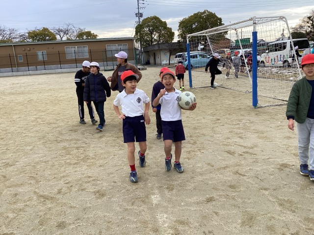 寒さに負けず外で遊んでいました。