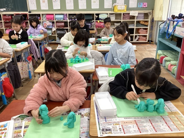 図工は、冬休みの思い出を粘土で作りました。