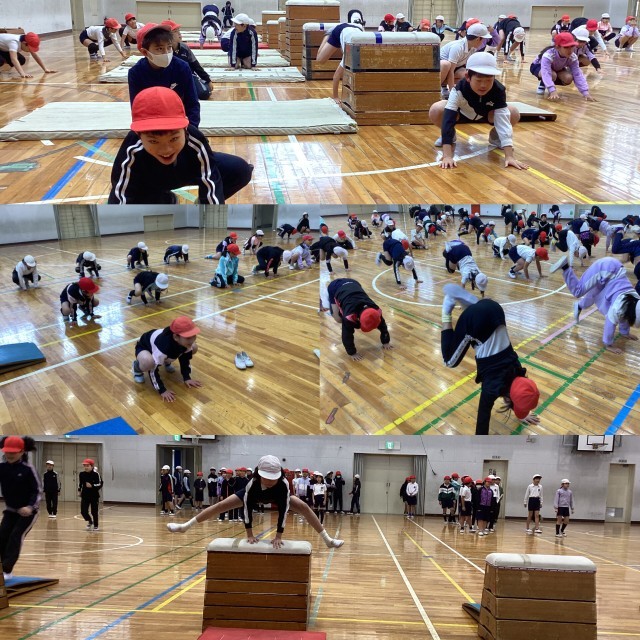 体育では、跳び箱、ハンドベースボールと活発に活動しています。