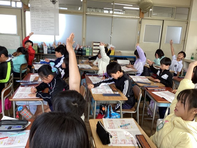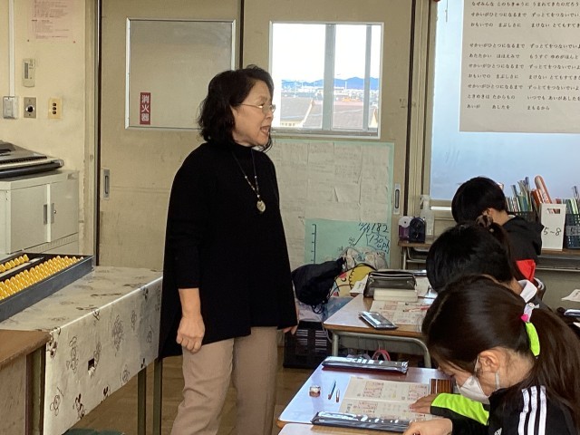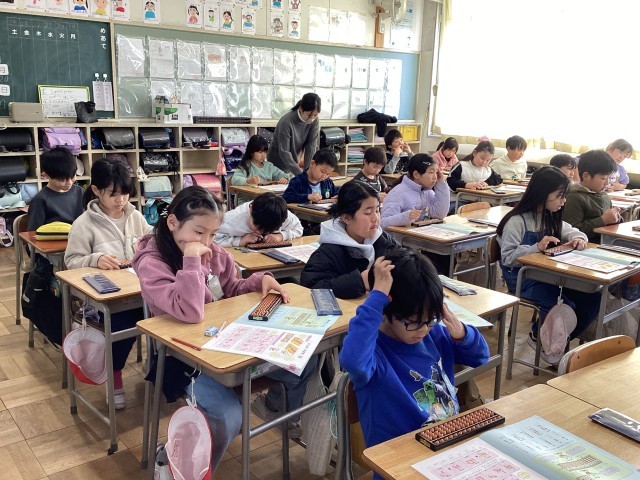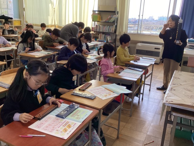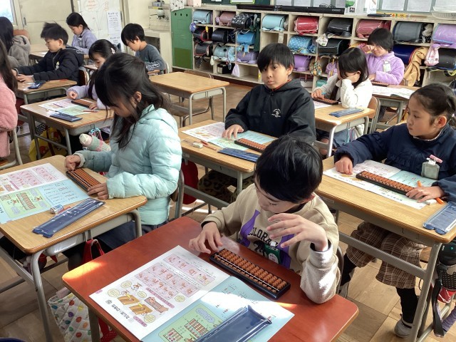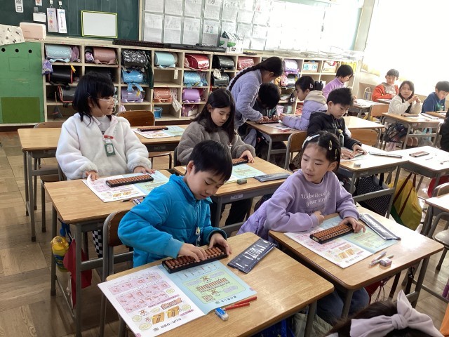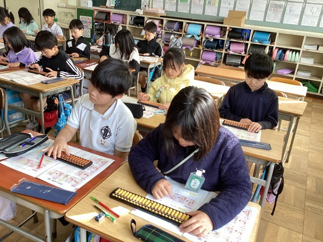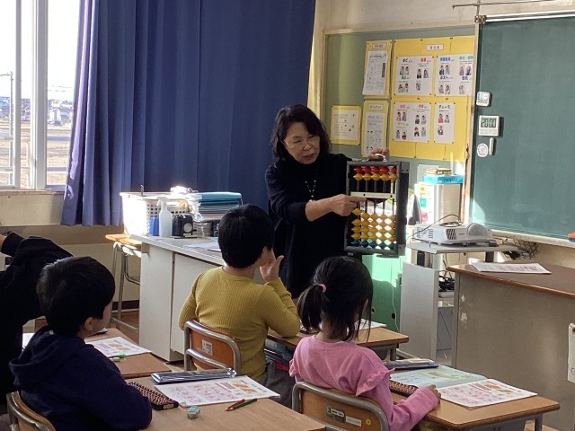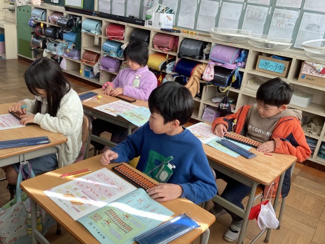 珠算教室の先生をお招きして、そろばんの練習をしました。初めて触る子も多く、珠の入れ方や払い方一生懸命練習しました。