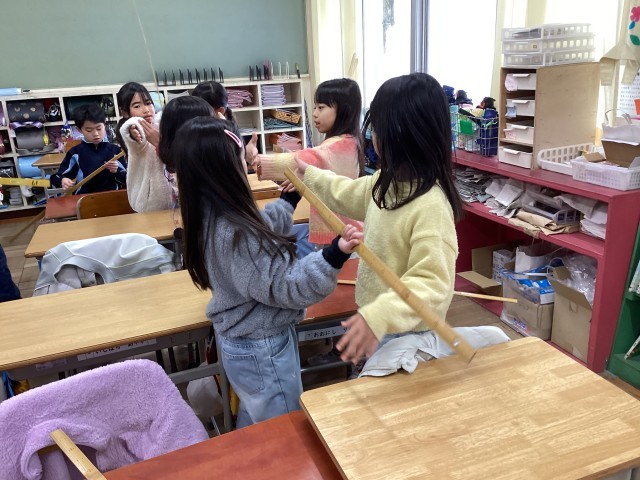 算数は、1メートルものさしを使って計測をしました。
