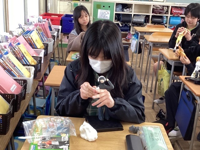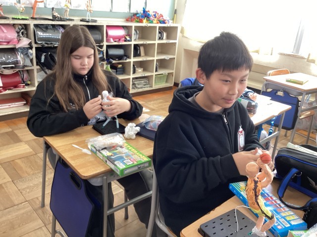 将来の自分の姿を紙粘土を使って表現しています。パティシエ、先生、スケートボーダー、ゲームクリエイターなど、思い思いの作品作っています。来週の学習発表会が楽しみです。