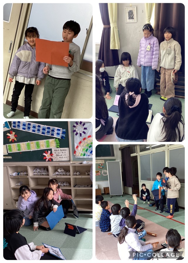 学習発表会に向けて1組と2組で練習を見せ合いました。お互いの良さを見つけることができました。
