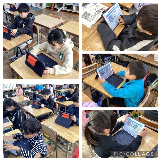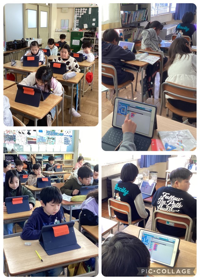 今日はラインズさんの授業がありました。リスの動きを繰り返しを使って、プログラミングで考えました。