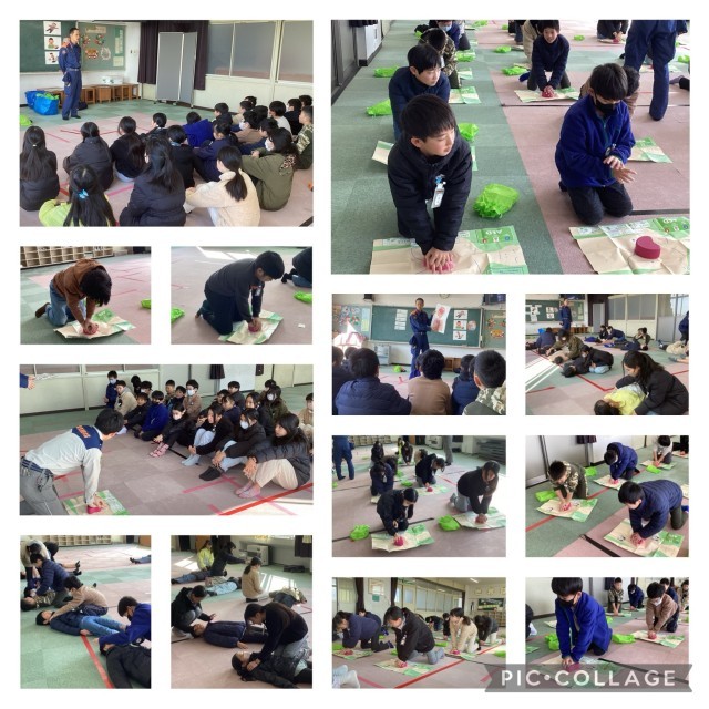 初めて体験する児童がほとんどでしたが、1分間100回のリズムに合わせて胸骨圧迫もできるようになりました。必要な時に5年生としても対応ができるといいです。