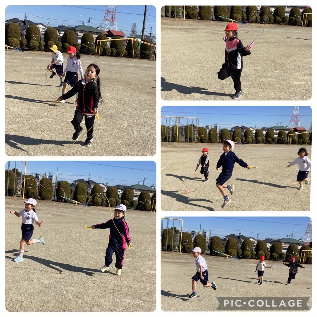 今日はぽかぽか陽気の中、縄跳びやマラソン、蹴り遊びを楽しみました。