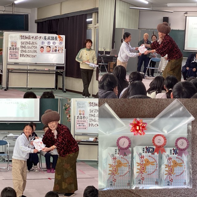 認知症サポーター養成講座がありました。どんな病気なのか、劇を見て関わり方を知りました。最後に講師の先生からカードがプレゼントされました。