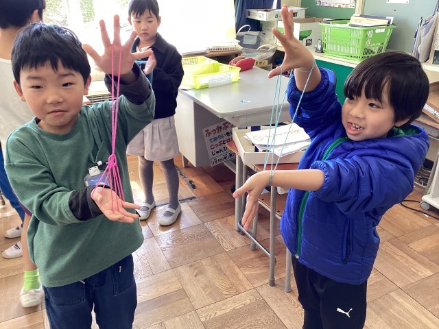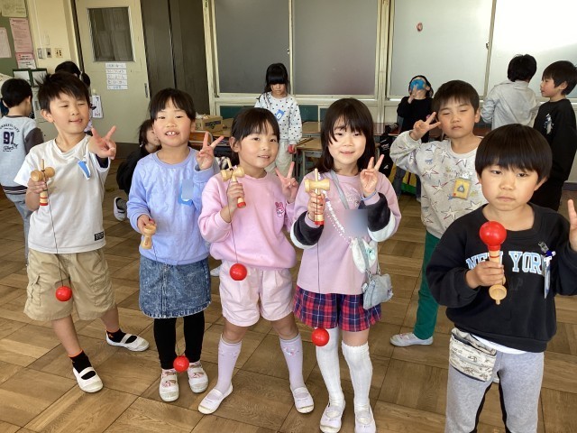 昔遊びをしました。新1年生に教えられるように練習です。