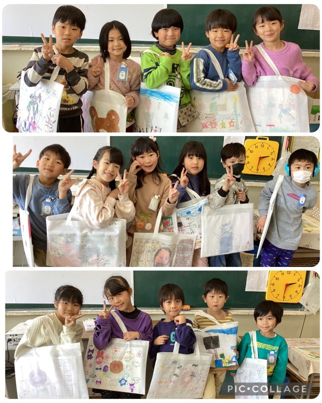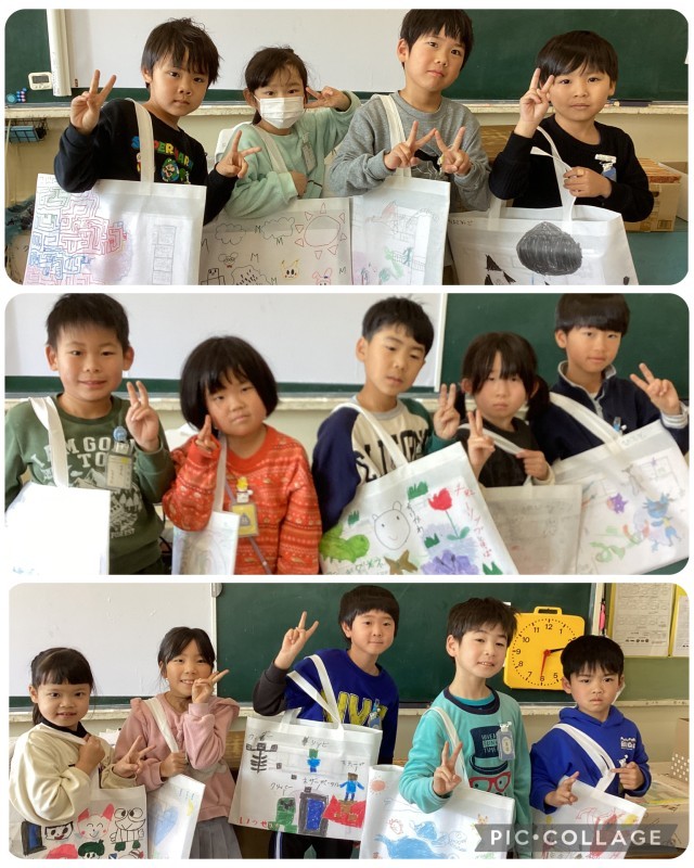 図画工作科の作品をまとめる袋に絵を描きました。