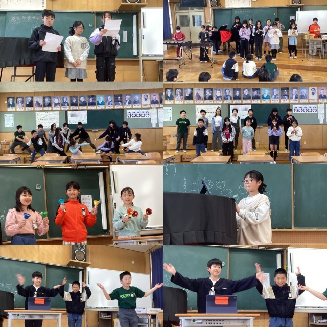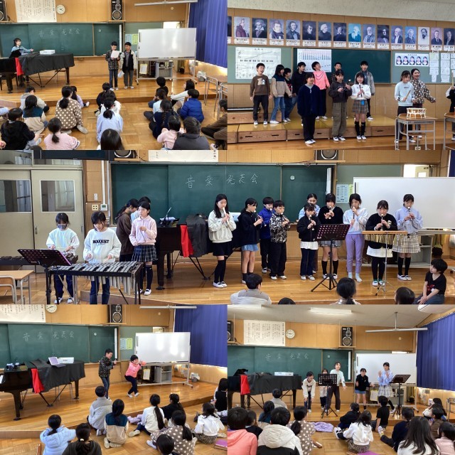 音楽の授業では、合奏やピアノ演奏、ダンスなどを発表会し、みんなで楽しみました。