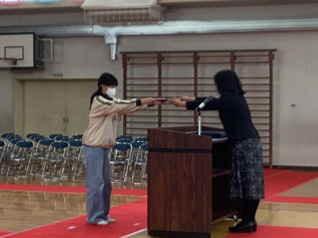 6 年生の修了式がありました。少し緊張しつつも、晴れやかな笑顔あふれる修了式でした。明日の卒業式も楽しみですね。