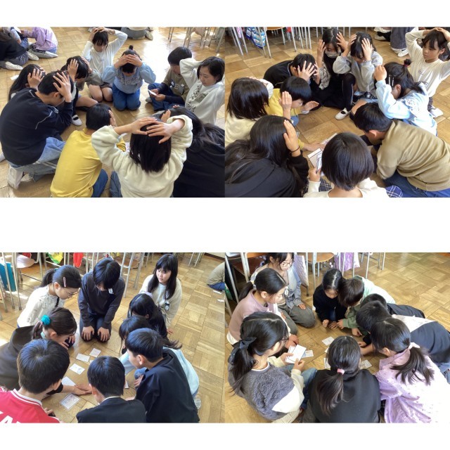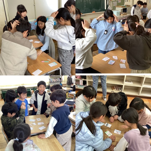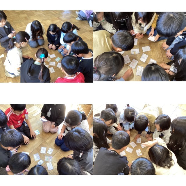 社会の授業では、愛知県を紹介するカルタを作りました。作ったカルタで遊びました。