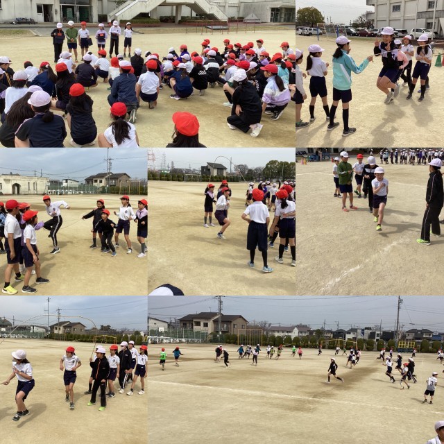 学年レクを学級委員さんが企画し、みんなで楽しみました。大縄跳びでは、しりとりやかわいいポーズなどお題をしながら跳びました。