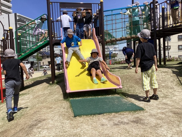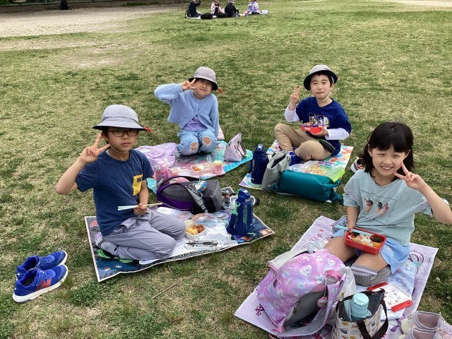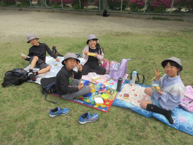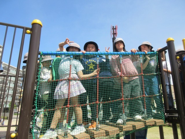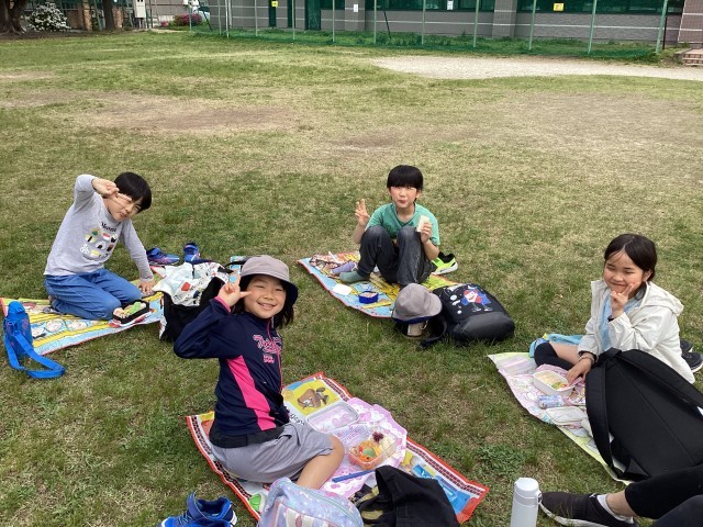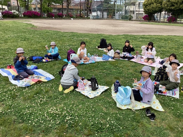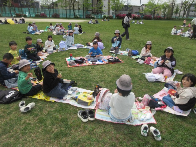 中央公園でお弁当とおかしを食べました。大矢公園でも遊具でたくさん遊びました。太陽が出て、さわやかな風が吹く中、楽しく活動できました。保護者のみなさま、お弁当の準備ありがとうございました。