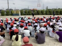 昨日と一転、下校時は晴れ間が現れましたが、登校時は雨が降っていました。一列に並び、交通安全に気をつけながら登校することができています。