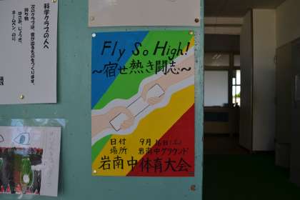 本校卒業生で南部中学校生徒が、体育大会のポスターを持ってやってきました。