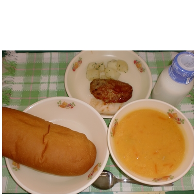 キャロットポタージュ 粉ふきいも ハンバーグ